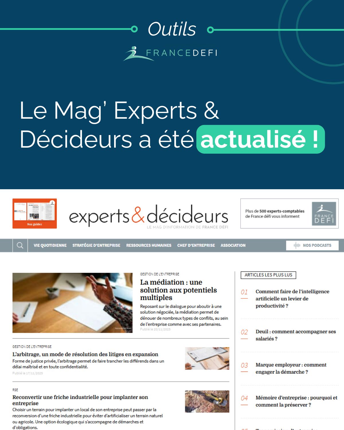 Le Mag Experts & Décideurs fait peau neuve pour accompagner encore mieux les dirigeants et entrepreneurs.