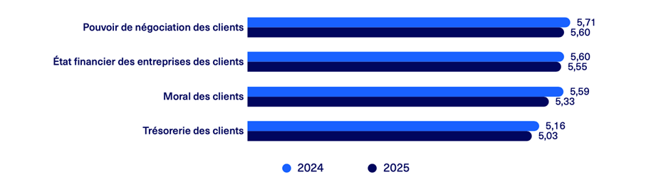- Le moral des clients chute : 5,33/10 (-0,26 points)
